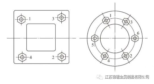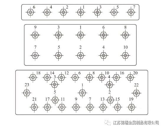 图5 拧紧圆形或方形布置的成组螺母的顺序