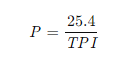 英制螺纹的牙距(P)与每英寸牙数(TPI)的换算公式为: