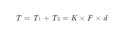 螺丝拧紧时所需的扭矩(T)主要由两部分组成:一部分是用于克服螺纹副摩擦的扭矩(T₁),另一部分是用于产生螺栓预紧力(F)的扭矩(T₂),其基本公式为:
