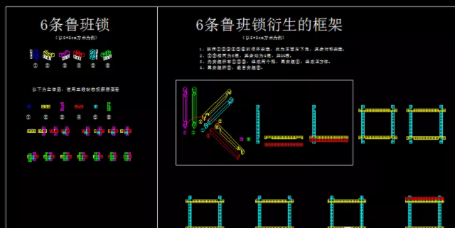 锁的种类各式各样,千其百怪。其中以*常见的六根(**代、第二代或A类,B类)和九根的鲁班锁(第三代或C类)*为著名。