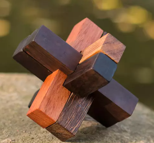 孔明锁,也叫八卦锁、鲁班锁。曾广泛流传于中国民间的智力玩具。是中国古代民族传统的土木建筑固定结合器,民间还有“别闷棍”“六子联方”“莫奈何”“难人木”等叫法。