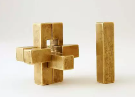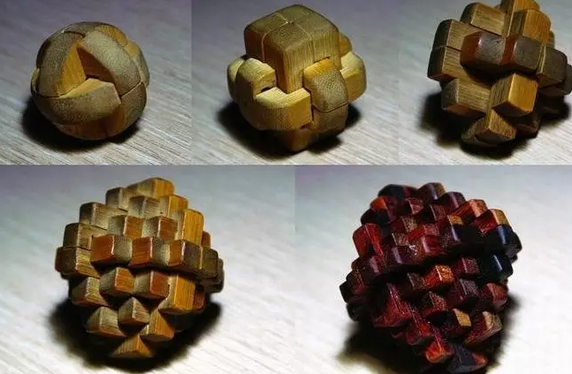 今天,鲁班锁有了更加复杂的内部结构,从外形到材料都在不断改变着,甚至以它特殊的造型方式在艺术领域崭露头角。