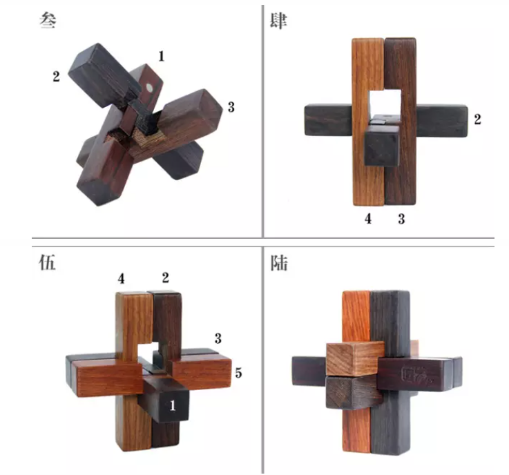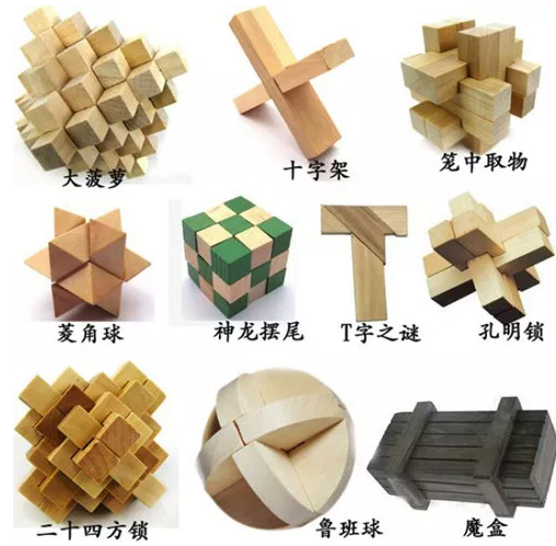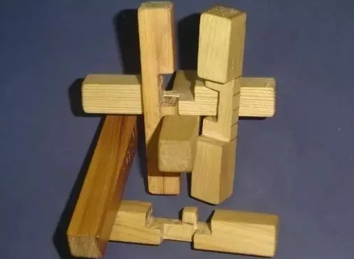 鲁班锁亦称孔明锁,民间还有“别闷棍”“六子联方”“莫奈何”“难人木”等叫法。它起源于中国古代建筑中首创的榫卯结构。这种三维的拼插玩具内部的凹凸部分啮合,十分巧妙。