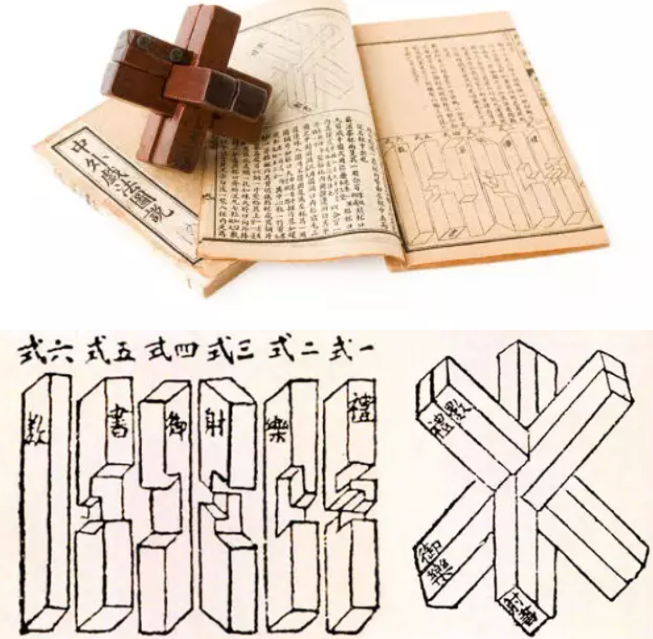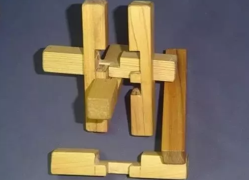 三国时期,孔明把鲁班的这种发明制成了一种玩具——孔明锁。原创为木质结构,外观看是严丝合缝的十字立方体。孔明锁类玩具比较多,形状和内部的构造各不相同,一般都是易拆难装。