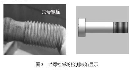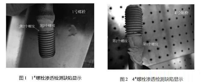 下面是通过对疲劳试验后的螺栓螺纹部位进行渗透检测、磁粉检测及涡流检测试验,对比其工艺过程及检测灵敏度,以期获得更适于螺栓螺纹部位的检测手段。