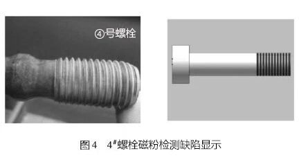 (1)检测试验材料:选择经过疲劳试验的4个有缺陷的18CrNi4WA材质螺栓分别编号为1#、2#、3#、4#。